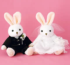 シルクハットがカッコイイ新郎ベアとハートティアラ&ヴェールがキュートな新婦ベア